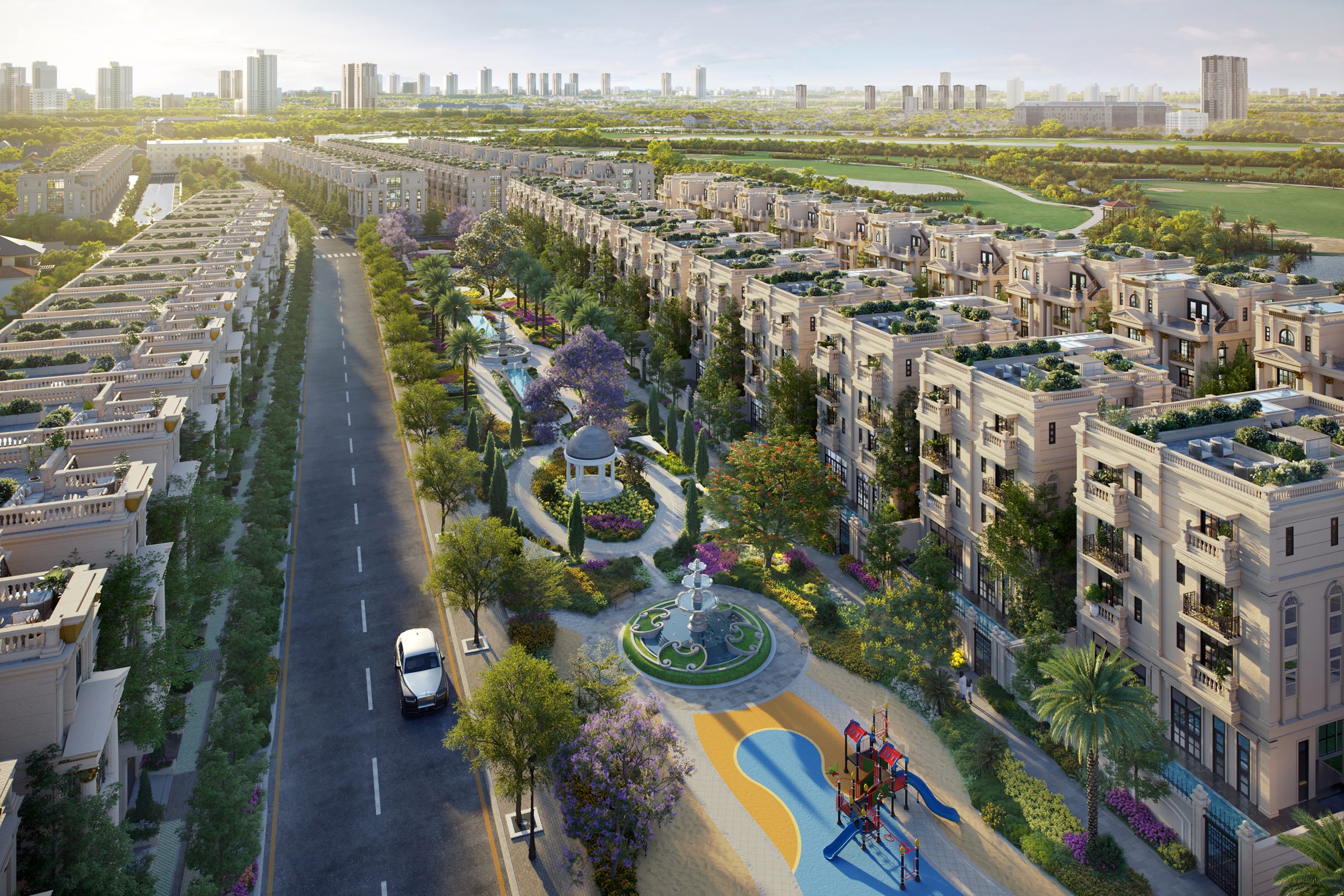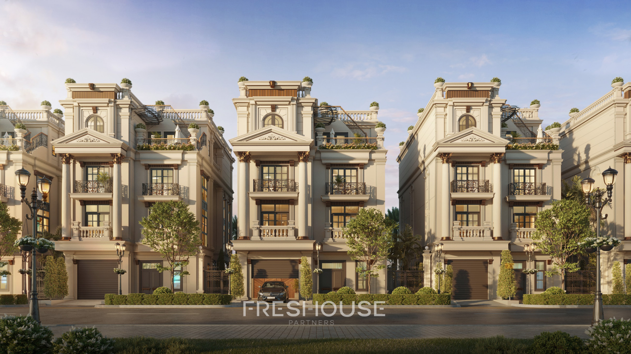 - Quy mô: 112 biệt thự (4 tầng nổi + 1 tầng hầm)